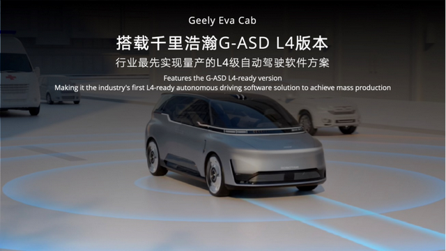 软件方面,它用的是“千里浩瀚G-ASD L4”版本,目前已经能做到在公开道路上无人接驳,比如酒店接送、机场接送、公务出行等场景。而且吉利旗下的曹操出行,已经在杭州、苏州试运营Robotaxi超过一年,积累了大量真实路况数据。按照计划,2027年吉利会推出Eva Cab的曹操出行定制版,把Robotaxi真正规模化推上路。