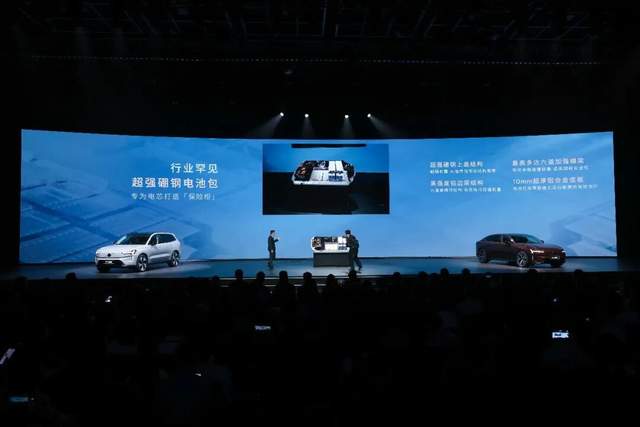 EX90和ES90基于全新的SPA2原生纯电架构打造。这个架构不是简单的“油改电”,而是从底层就将电动车的特性(电池布局、电机特性)纳入安全考量。为了应对碰撞,它设计了“硼钢电池防护系统”,用超高强度的硼钢覆盖电池包上盖,内置多道加强横梁,要求在最严苛的碰撞测试中,电池模组电芯“0侵入”。为了确保信号传输的绝对可靠,它甚至放弃了不稳定的蓝牙,坚持采用硬线连接来监控电池状态。这种近乎“过度”的安全冗余,在行业中极为罕见。