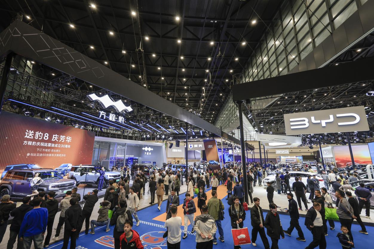 车展现场,比亚迪海豹06GT、仰望U9、方程豹豹8、腾势Z9GT、鸿蒙智行智界R7、极氪MIX、全新智己LS6、昊铂SSR、乐道L60、猛士917、全新岚图梦想家、埃安AION RT、极石01、ID.与众、深蓝S05等众多新能源新车亮相。